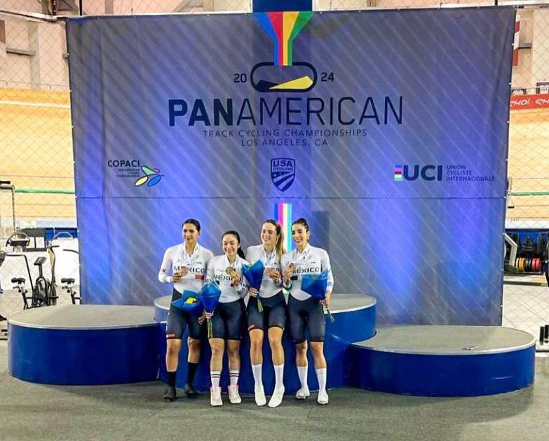 CARSON._ Las ciclistas culiacanenses María Antonieta Gaxiola y Yarely Salazar, junto con Victoria Velasco y Yareli Acevedo, obtuvieron la medalla de bronce en persecución por equipos dentro del Campeonato Panamericano de Pista, que se realiza en Carson, California.