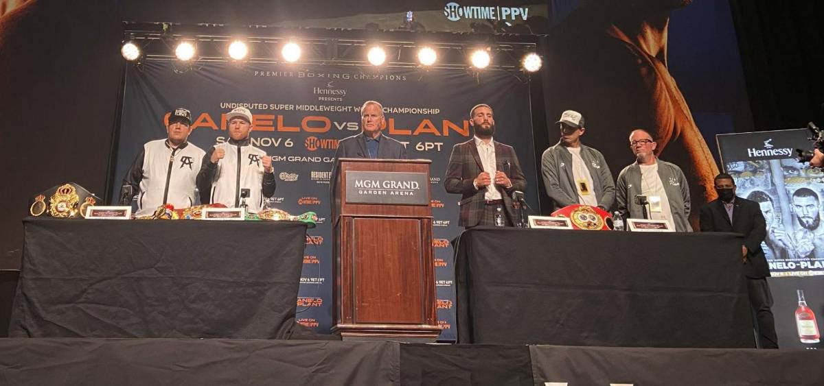 LAS VEGAS._ El campeón mundial unificado de peso súper mediano de la AMB / CMB / OMB, el mexicano Saúl “Canelo” Álvarez y el invicto campeón mundial de peso súper mediano de la FIB Caleb “Sweethands” Plant dieron una vista previa de su histórico enfrentamiento en la conferencia de prensa final de este miércoles, antes de su enfrentamiento del próximo sábado 6 de noviembre, en el MGM Grand Garden Arena, de Las Vegas, Nevada.