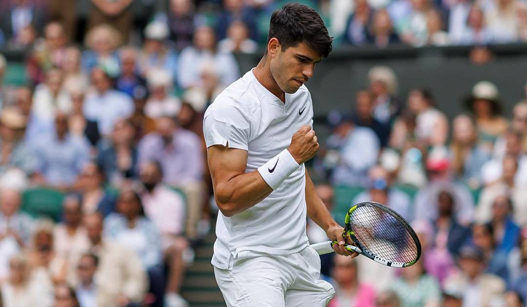 Carlos Alcaraz se emplea a fondo en su estreno en Wimbledon