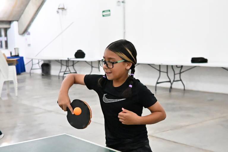 “Estoy muy feliz en el tenis de mesa, me divierto mucho, aquí convivo con mis amigas y voy aprendiendo. Sí me gustaría participar en el municipal de la Olimpiada, pero tengo que entrenar más para ganar”, expresó Bañuelos Villalobos.