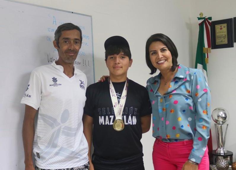 MAZATLÁN._ Después de poner en alto el nombre de Mazatlán y de Sinaloa, el medallista de oro en los Juegos Nacionales Conade, Joel Isaac Coronado Martínez compartió su experiencia con Fabiola Judith Verde Rosas, directora del Instituto Municipal del Deporte, a quien agradeció el apoyo recibido.