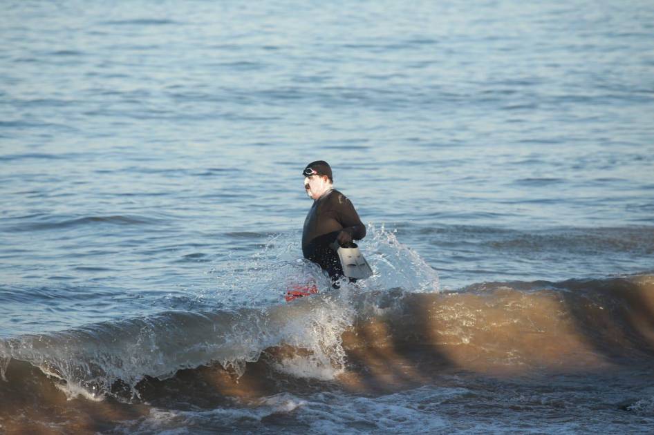 MAZATLÁN._ Sergio “Tiburón” Velarde cumplió con el objetivo trazado de natación este domingo en Playa Norte.