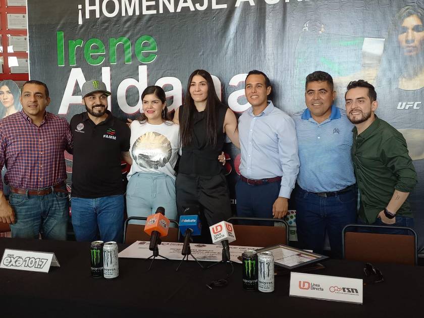 CULIACÁN._ La culiacanense Irene Aldana Robles recibió este jueves en Culiacán un merecido homenaje como pionera profesional de la UFC (Ultimate Fighting Championship).