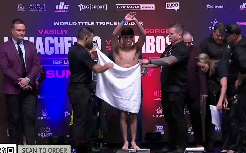 En la ceremonia de pesaje, el porteño necesitó de subirse a la báscula en un par de ocasiones para dar el peso de la división, luego que en el primer intento dio 115.74 libras (52.5 kilogramos).