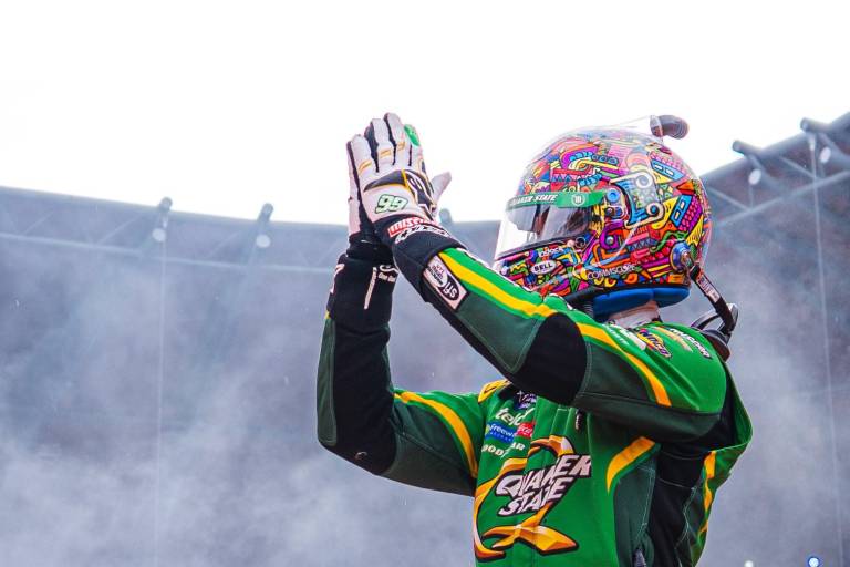 Suárez, quien no corría regularmente en la categoría, aceptó el reto de competir en casa con el equipo JR Motorsports. Un fuerte accidente en la sesión clasificatoria lo obligó a cambiar de auto y salir desde el fondo, pero eso no lo detuvo. En cuestión de siete vueltas ya estaba dentro del Top 20, y vuelta a vuelta fue labrando su camino a la cima con inteligencia y precisión.