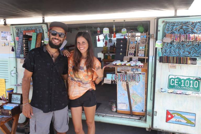 “Hacemos más que nada artesanías, como lo son postales, stickers, algunas combis de juguete y básicamente con eso hemos podido financiar este viaje. El gasto principal es comida, gasolina y algún extra.