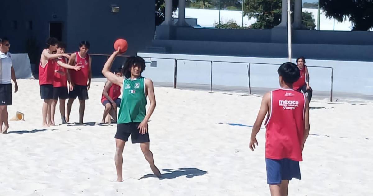 El mazatleco Rodolfo Rivelino Fregoso Ramos mostró su gran calidad como jugador en la concentración de la Selección Mexicana de handball de playa, acompañado por su entrenador, Luis Zamora.