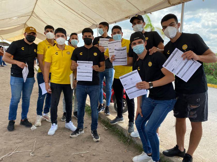 Los elementos extranjeros del equipo, José Raúl Zúñiga (colombiano) y Jonathan Betancourt (ecuatoriano), también formaron parte de la delegación áurea que asistió responsablemente al centro de vacunación más cercano al Estadio Dorados.