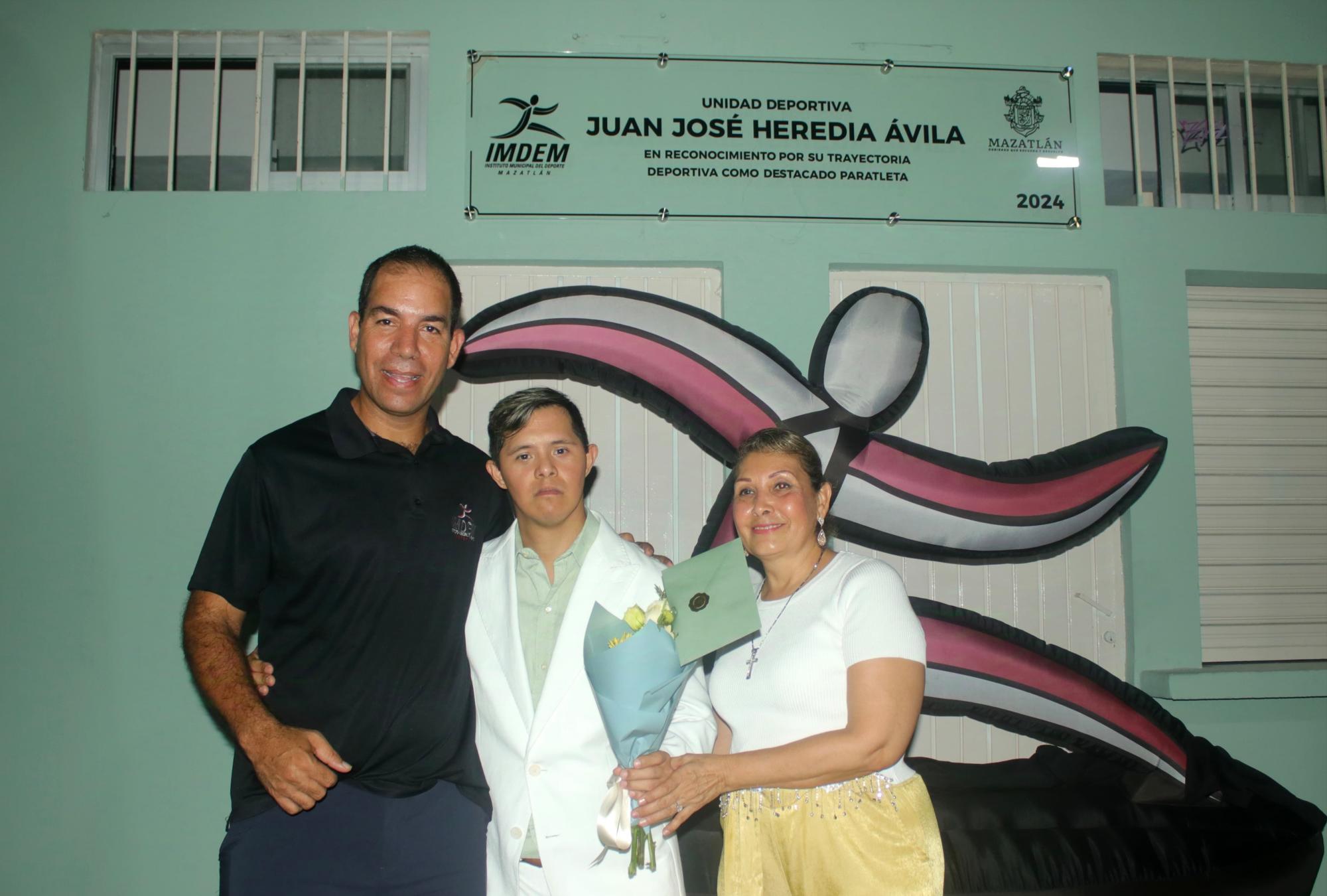 A la ceremonia de develación también asistieron los padres del deportista, Juan José Heredia López y María Isela Ávila Camacho, además del encargado de Deporte Adaptado del Imdem, Juan Castellanos Velarde, así como el Regidor, Roberto Rodríguez, quien fue el primer impulsor del cambio de nombre en el Cabildo Mazatlán.