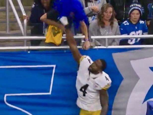 DK Metcalf golpea a un aficionado en el Ford Field durante el Steelers vs Lions