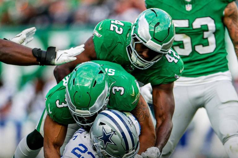 FILADELFIA._ Saquon Barkley corrió para 167 yardas superando las 2 mil en la temporada, el quarterback suplente Kenny Pickett corrió y lanzó para anotaciones antes de retirarse con las costillas lesionadas, y Filadelfia Eagles aseguraron el título de la División Este de la NFC al derrotar 41-7 este domingo a los Dallas Cowboys.