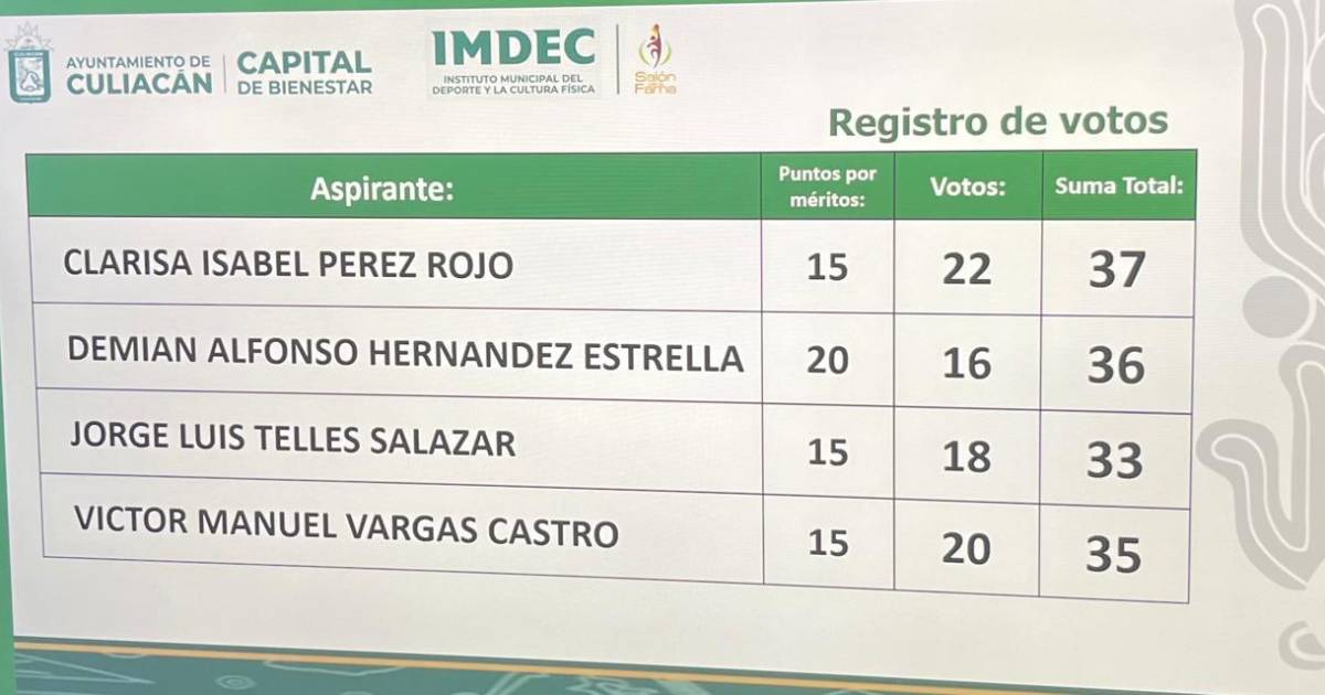 Todos ellos lograron el 75 por ciento de la votación, donde al final terminaron de la siguiente manera: Pérez (37) votos; Hernández (36), Vargas (35) y Téllez (33).