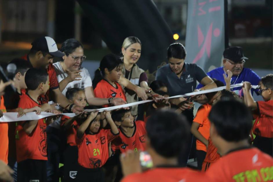 Al corte de listón acudió Estrella Palacios Domínguez, Presidenta Municipal de Mazatlán; Fabiola Verde Rosas, directora del Instituto Municipal del Deporte de Mazatlán; Minerva Osuna Zavala, síndica procuradora del Ayuntamiento; Heriberto Reséndiz, regidor de la Comisión de Juventud y Deporte; y el entrenador de futbol Óscar Padilla Núñez, representante de los vecinos del espacio deportivo.
