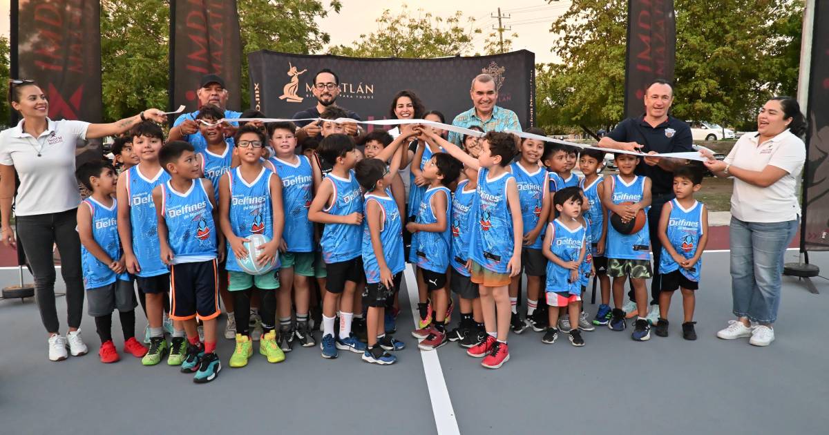 Junto al presidente del Comité Municipal de Basquetbol, Ramón Aguirre Osuna, la directora del Instituto Municipal del Deporte Mazatlán, Fabiola Verde Rosas, realizó el corte de listón y adelantó que con la actual administración se vienen más mejoras para el deporte en general y para el basquetbol.