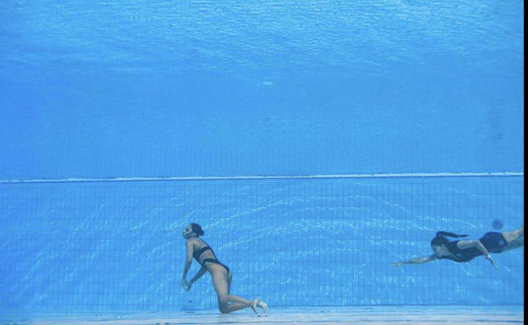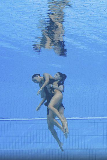 La secuencia cuadro por cuadro quedó retratada por los fotógrafos que presenciaban la definición, en la que la nadadora oriunda de Nueva York, de 25 años, realizaba su actuación sin problemas. Hasta que perdió el conocimiento y preocupó a todos los presentes, desde a los espectadores a su equipo de trabajo y autoridades.