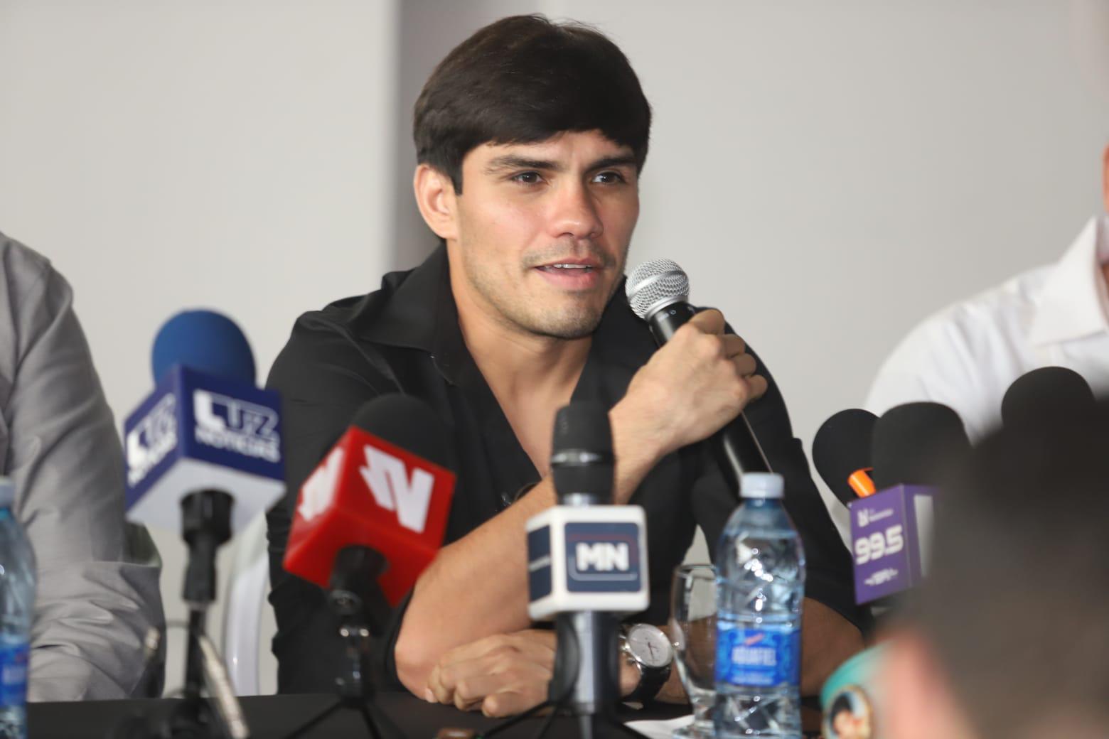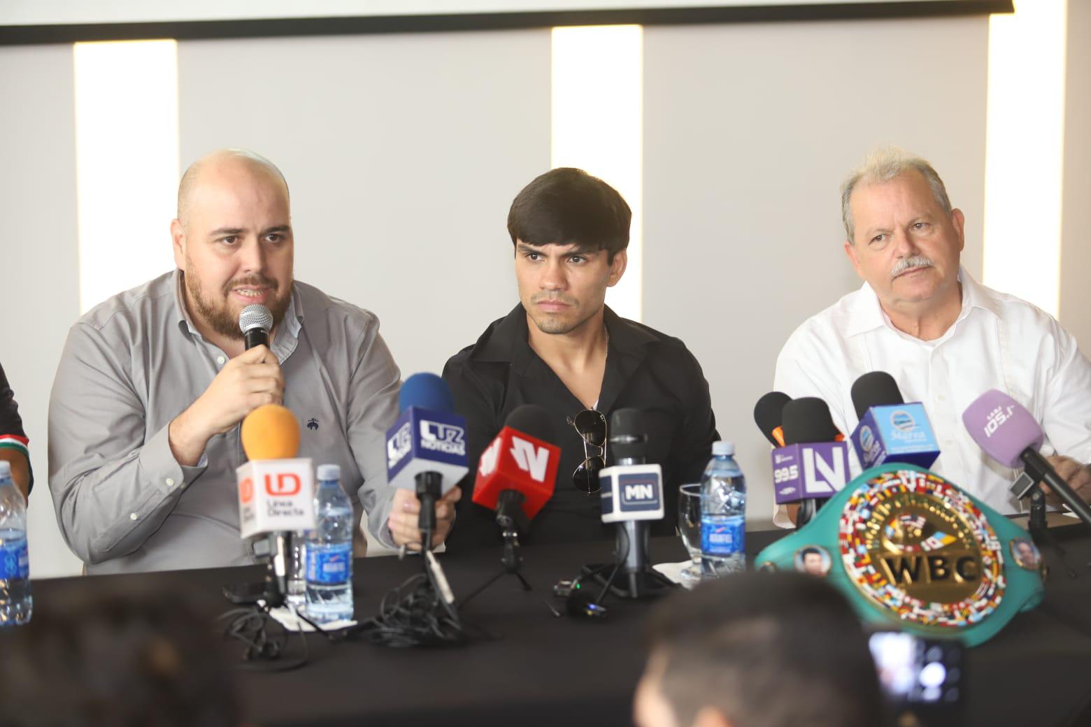 La función, que tiene como eslogan “El mundo solo puede tener un campeón”, fue confirmada la mañana de este miércoles en una rueda de prensa donde estuvieron presentes el pugilista mazatleco, su entrenador el profesor Marcos Hernández; el promotor Noé Godoy; así como Jesús Adrián Tirado, director de Eventos Ultra; Alejandro Higuera, subsecretario de industrias de la Sector Sinaloa; Eloy Ruiz Gastélum, de Protección Civil; Fabiola Verde, directora del Imdem; y el boxeador porteño Pedro “Chiquilín” Acosta.