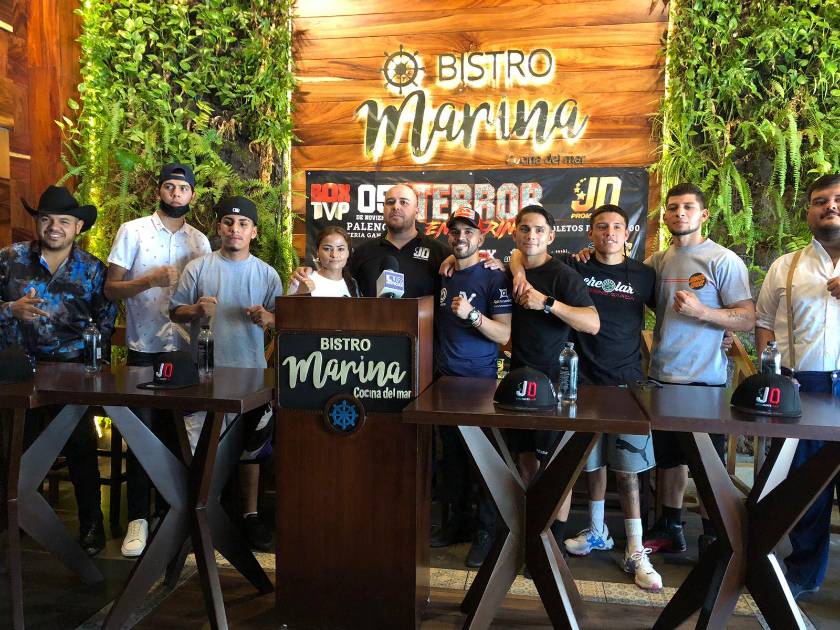 CULIACÁN._ Este miércoles se llevó a cabo la rueda de prensa de la función “Terror en el Ring” de JD Promotions, misma que se efectuó en las instalaciones de Bistro Marina, donde se dieron los detalles de la cartelera en la noche boxística que tendrá como sede el Palenque de la Feria Ganadera de Culiacán este viernes 5 de noviembre a partir de las 19:00 horas, teniendo a Maricela “Baby” Quintero como peleadora estelar y rodeado de grandes pugilistas.
