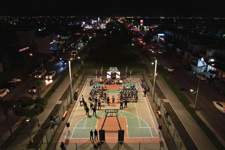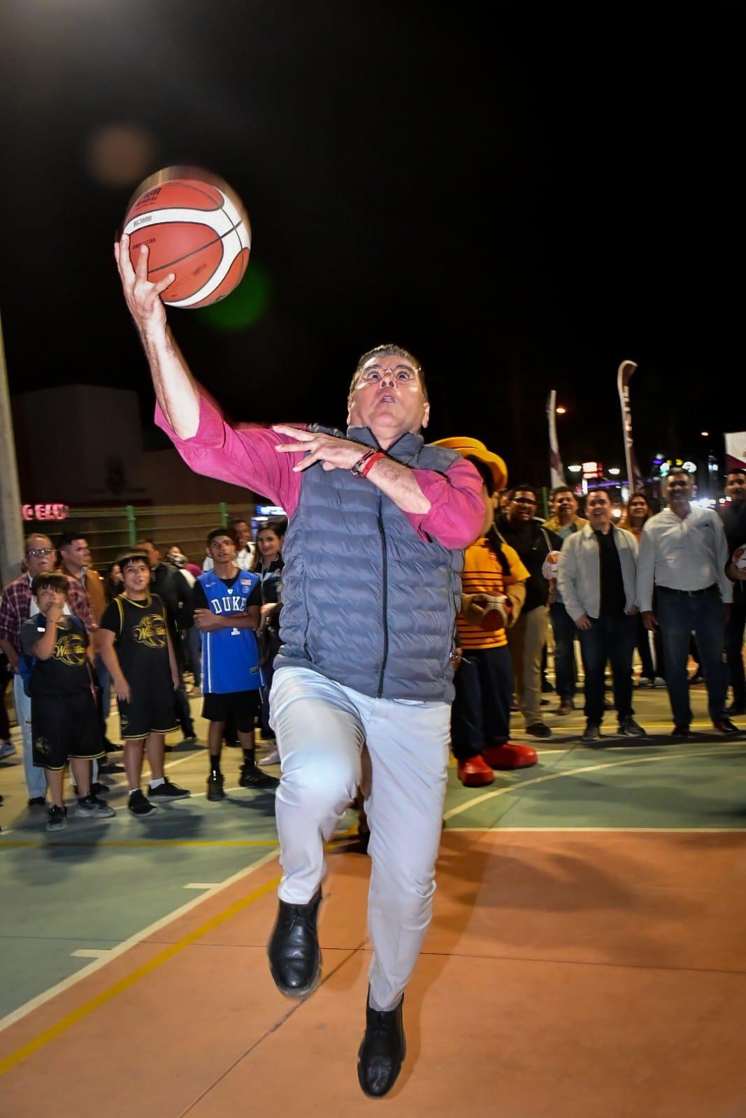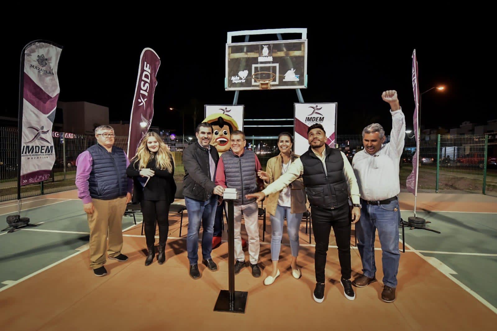 MAZATLÁN._ Este miércoles se llevó a cabo el encendido de luces led de la cancha de basquetbol del Parque Lineal Óscar Pérez Escobosa.