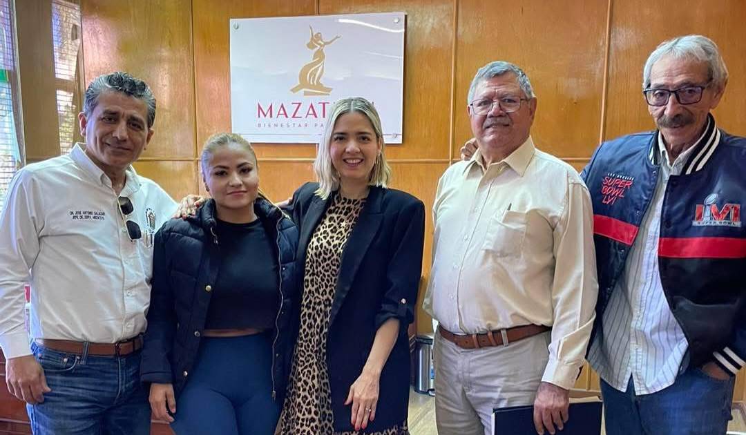 La ex campeona internacional originaria de Culiacán se presentó con la Alcaldesa local, junto con Roberto Tostado, titular de la Comisión de Box y Lucha Libre de Mazatlán, y José Antonio Salazar, médico del mismo organismo.