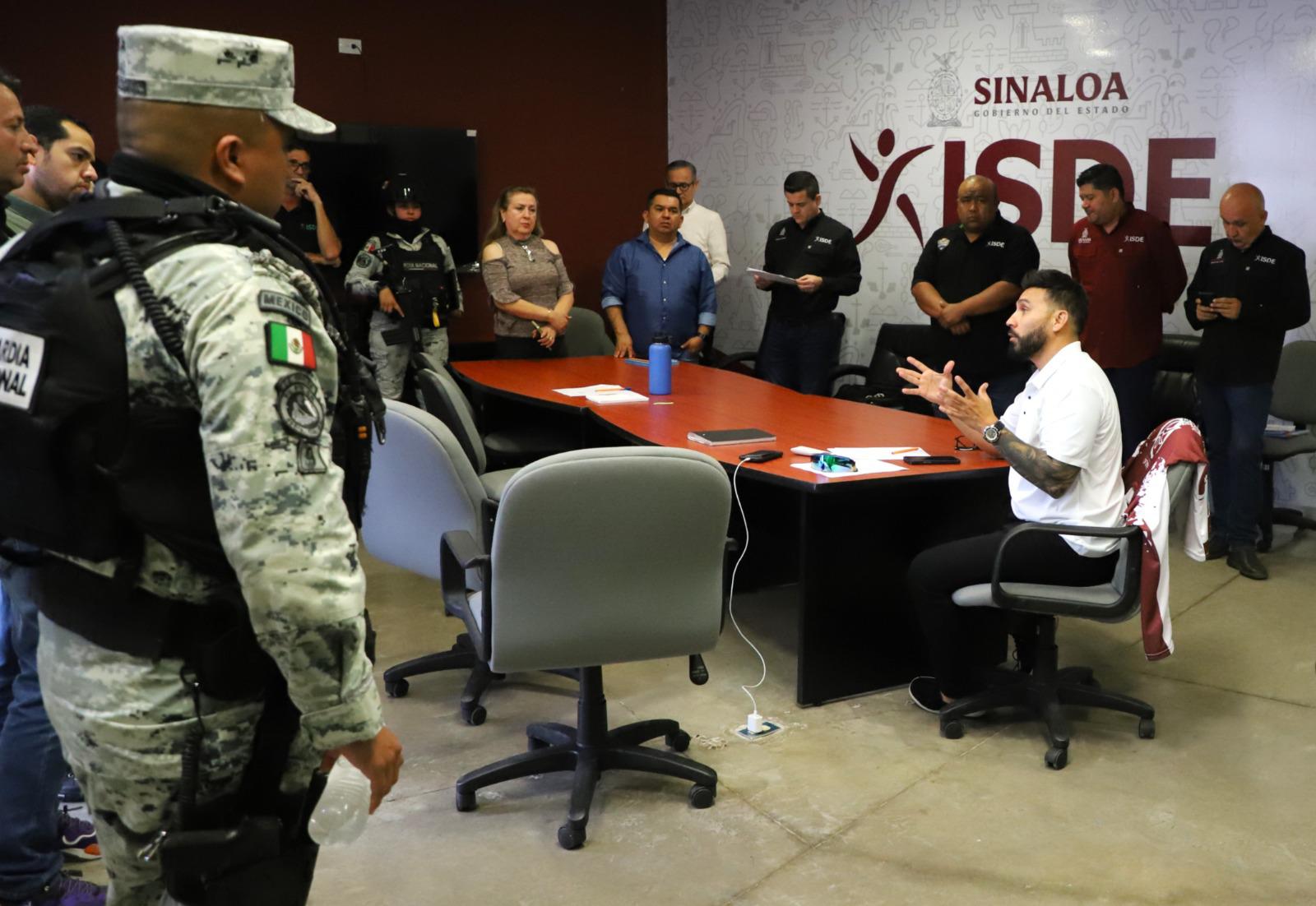 El titular del Isde se reunió con el subinspector de Guardia Nacional en Sinaloa, Daniel Gutiérrez, quien junto con todo su equipo asistieron a las oficinas centrales del Isde para detallar todo lo referente al evento.