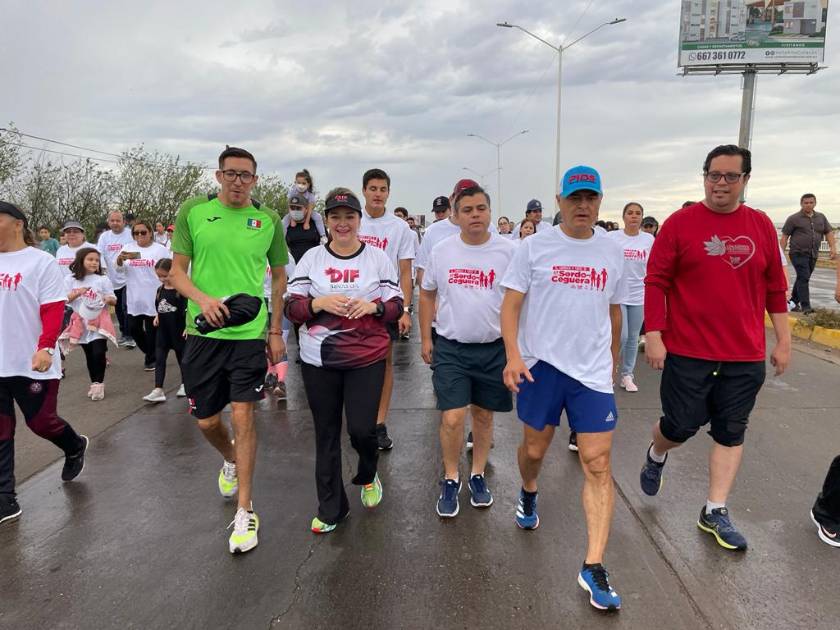 El medallista olímpico de Barcelona 1992, Carlos Mercenario; la presidenta del DIF, Eneyda Rocha Ruiz, y el titular del Patronato Impulsor del Deporte Sinaloense, David Vargas Rodríguez, dieron el conteo para dar inicio a la caminata.