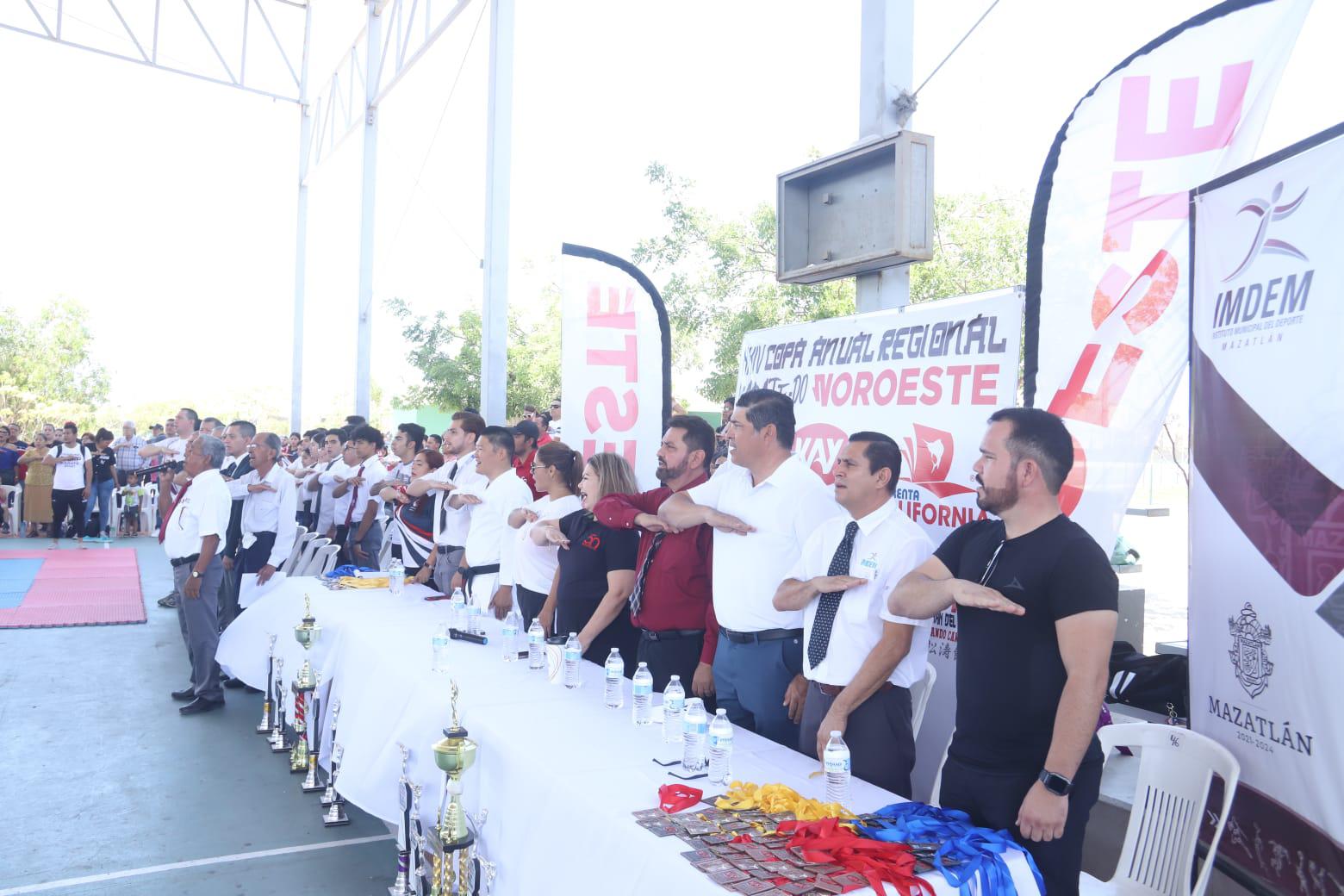 MAZATLÁN._ Con la exclamación de un “Kiai” al unísono entre todos los participantes, se inauguró la edición 24 de la Copa Anual Regional de Karate-Do Noroeste, en la Unidad Deportiva Benito Juárez.
