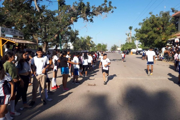 Los atletas de la Secundaria Federal Eligio Díaz V. tomaron la Avenida Sandra Calderón para participar en la justa en la que se premió con atractivas medallas a los ganadores y pases para el espectáculo de los Enanitos Toreros.