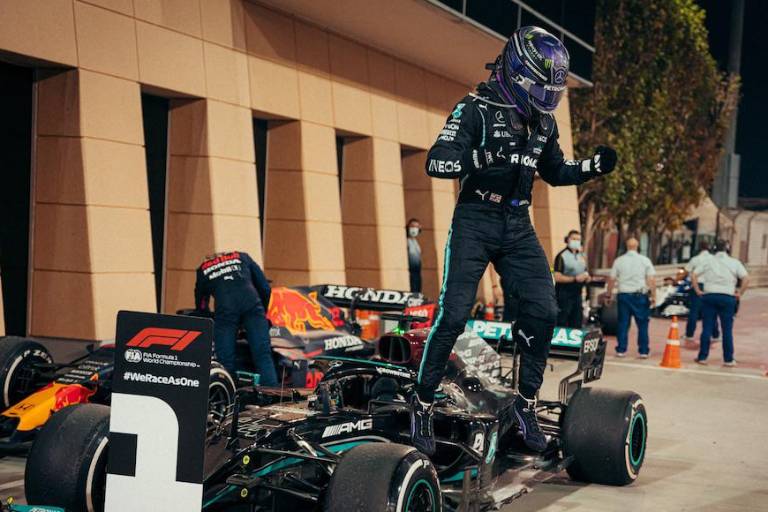 El piloto británico Lewis Hamilton (Mercedes) se impuso al neerlandés Max Verstappen (Red Bull) en un apretado final del Gran Premio de Bahreín, con el que obtiene la victoria número 96 de su carrera deportiva.