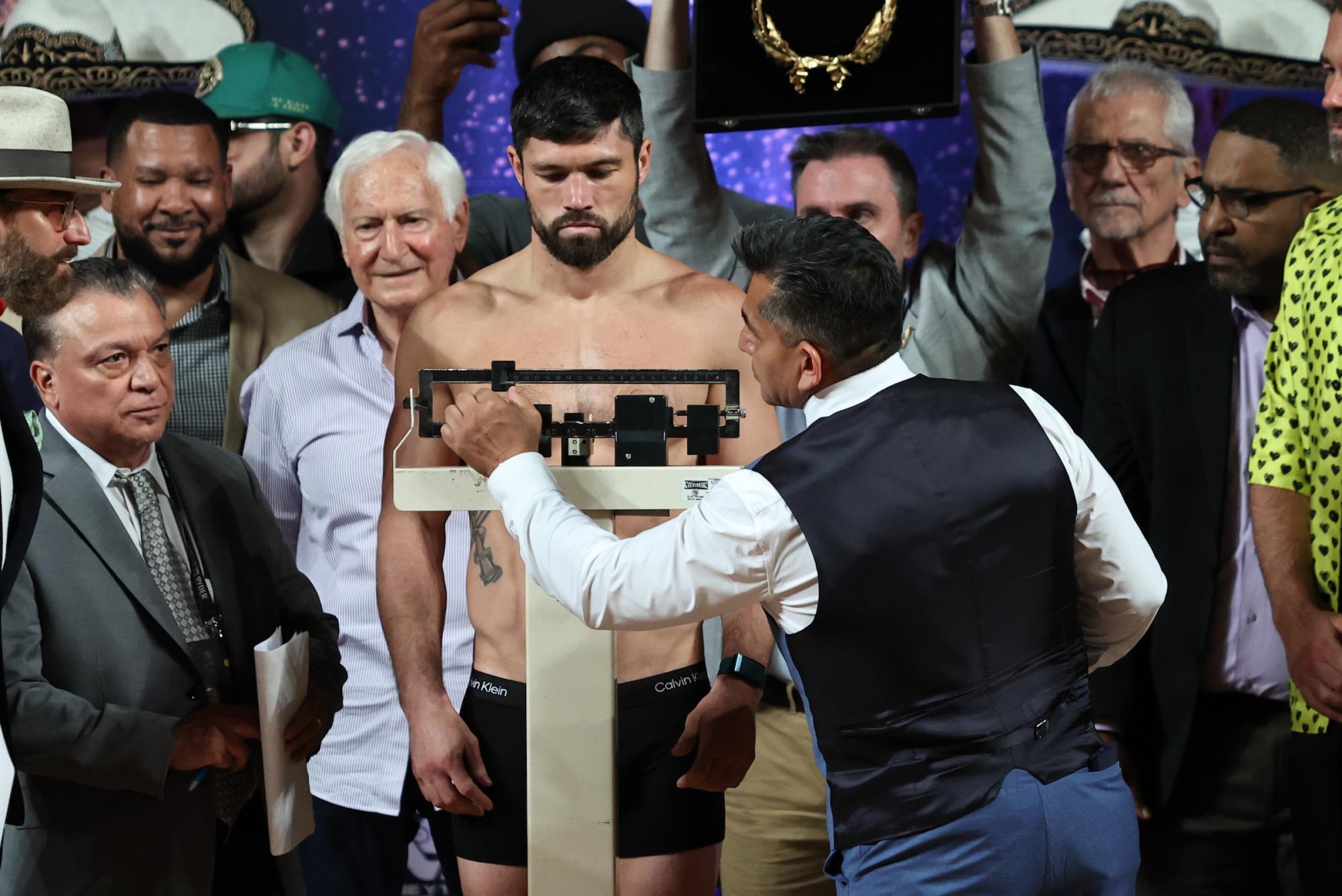 Este viernes se llevó a cabo el pesaje oficial de este combate. El Canelo marcó 166.6 libras, mientras que Ryder detuvo la báscula en 167.9 libras, para este duelo pactado a 12 rounds, en el que estarán en juego los títulos del Consejo, la Asociación, la Organización y la Federación Internacional de Boxeo.