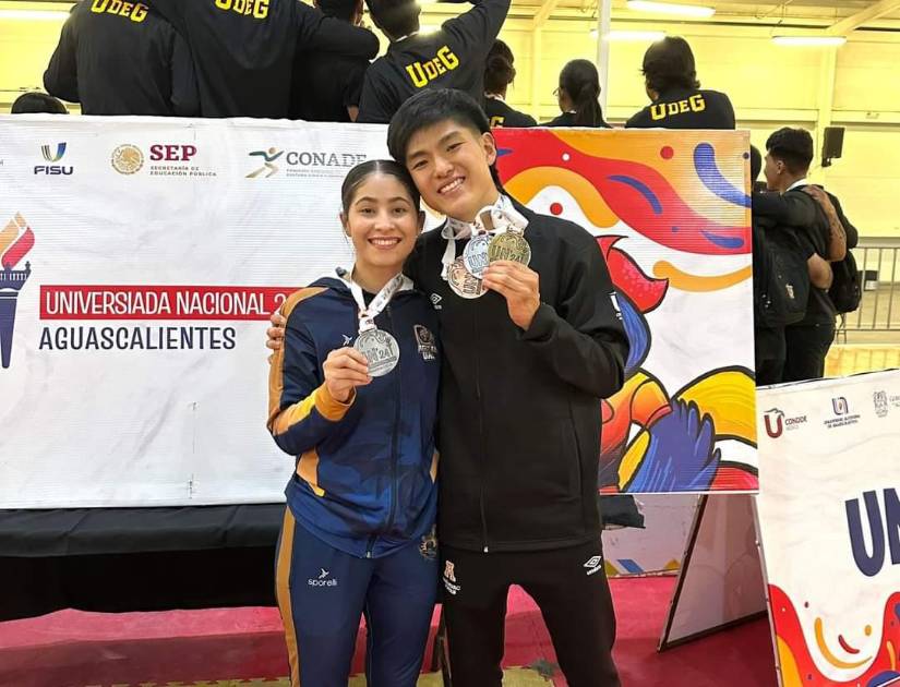 AGUASACALIENTES._ Además de su pasión por las artes marciales, los integrantes del Team Moreno, Idalia Karime Nieto Flores y Hiroto Javier Yoshii Mizukami, compartieron la dicha de subir al podio de ganadores, en la Universiada Nacional 2024, que se lleva a cabo en tierras hidrocálidas.