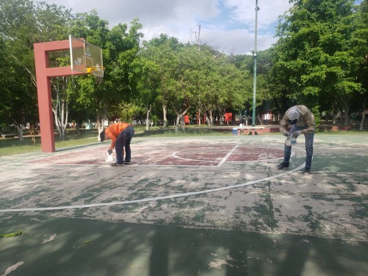 En el fraccionamiento La Campiña se inició el pintado de las líneas, así como el resto de la misma a tres colores de la cancha de basquetbol con una buena aceptación por quienes ahí practican el baloncesto y que no lo hacían por el problema de salud que representa el coronavirus.