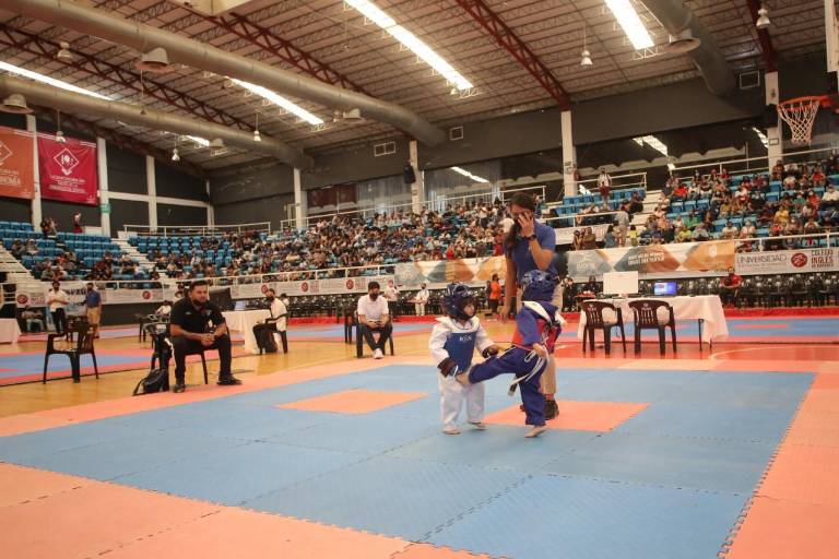 MAZATLÁN._ Con la participación de más de 800 niños, jóvenes y adultos, se lleva a cabo la primera edición de la Copa Taekyon de taekwondo, en el Lobodome de la Universidad Autónoma de Durango.