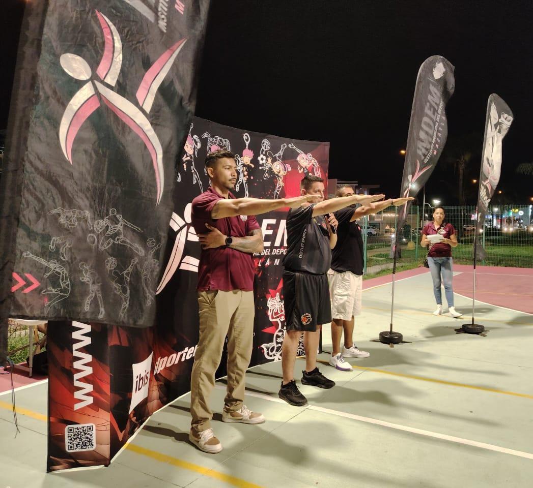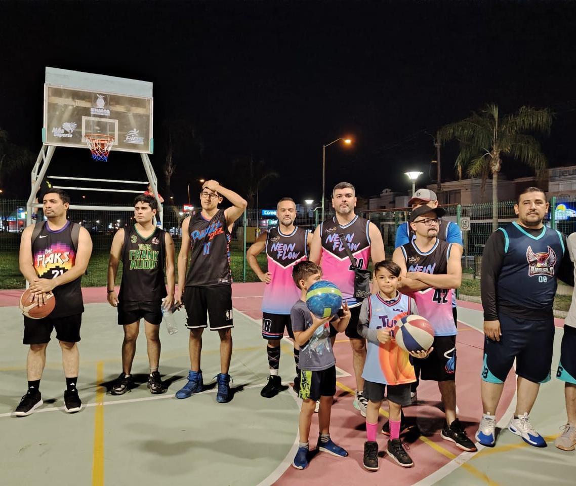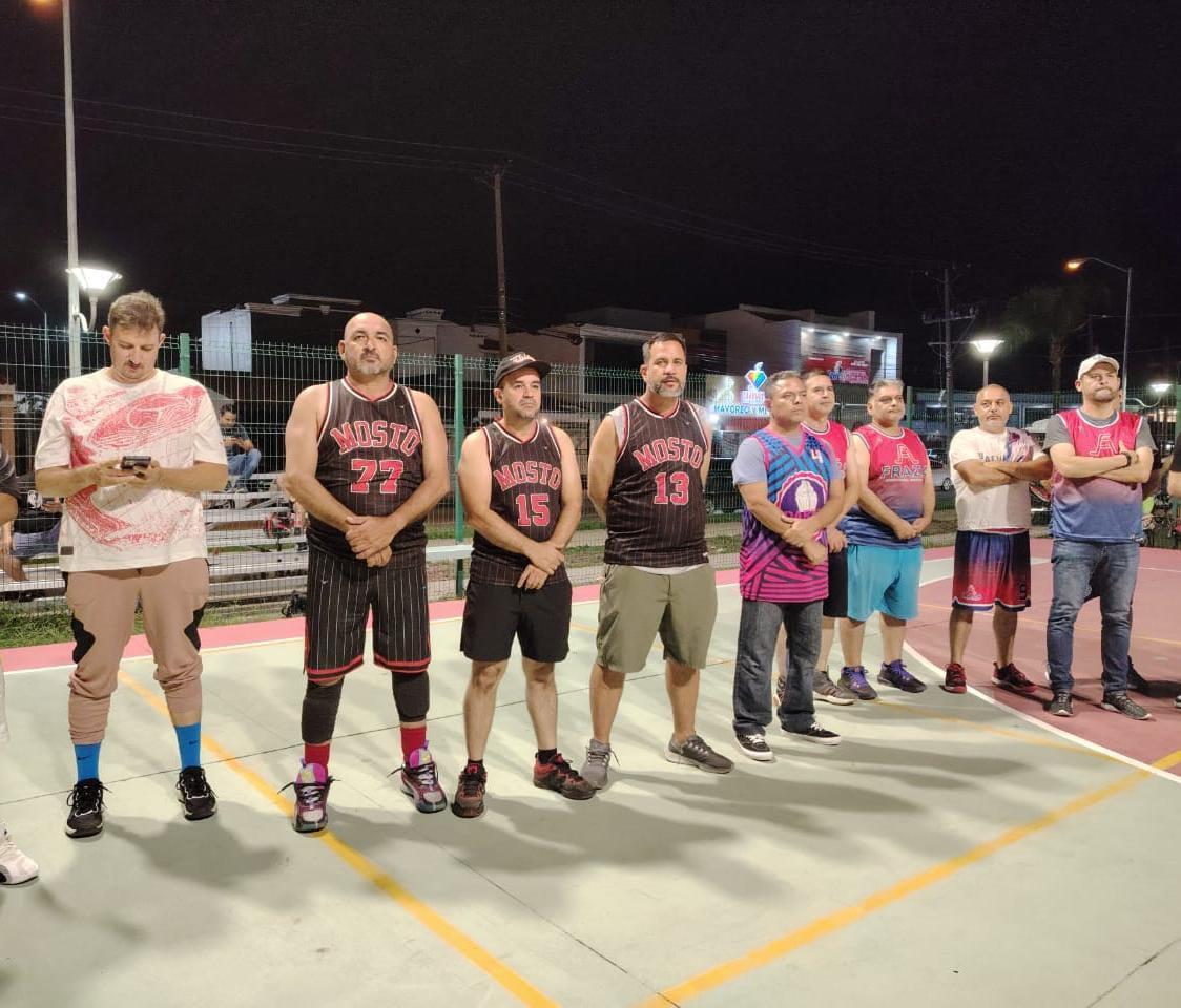 MAZATLÁN._ Con el objetivo de realizar una gran campaña y la ilusión de levantar el campeonato al finalizar la temporada, los jugadores de las categorías Veteranos y Segunda Fuerza se reunieron en el “rectángulo” para llevar a cabo la inauguración de la Cuarta Edición de la Liga de Baloncesto Parque Lineal.