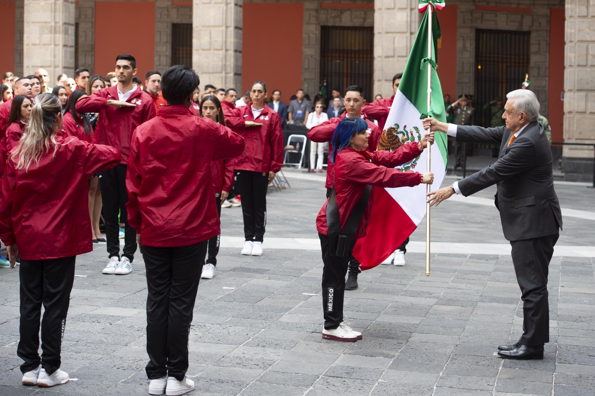 Tras la entrega simbólica del lábaro patrio, el mandatario federal emitió un breve discurso en el que agradeció a familias, entrenadores y atletas por su esfuerzo. A la par, prometió que todos los deportistas que participarán en los Juegos Centroamericanos recibirán una recompensa a su regreso.
