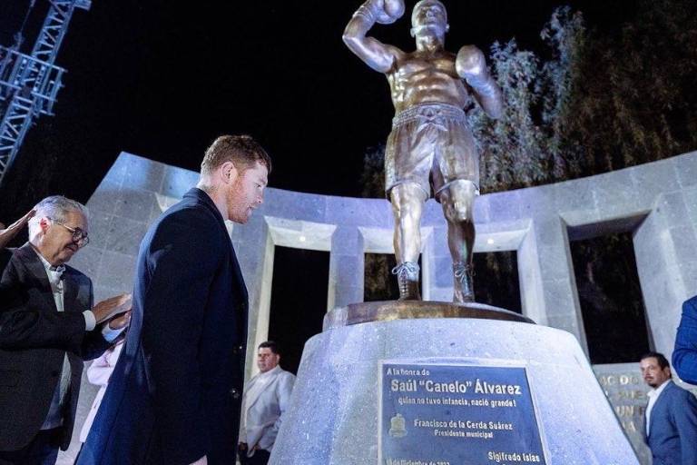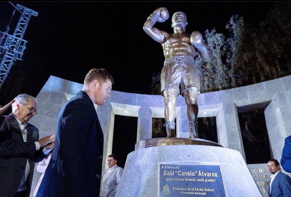 JUANACATLÁN._ El municipio de Juanacatlán, en Jalisco, reveló una estatua en honor de Saúl “Canelo” Álvarez, en honor a sus grandes logros dentro del boxeo y cómo ha dejado en alto al pueblo mexicano tanto dentro como fuera del ring.