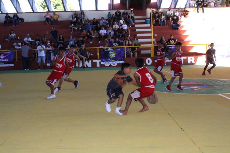 EL ROSARIO._ El encuentro de exhibición de baloncesto entre niños Triquis y rosarenses mantuvo a chicos y grandes emocionados de principio a fin.