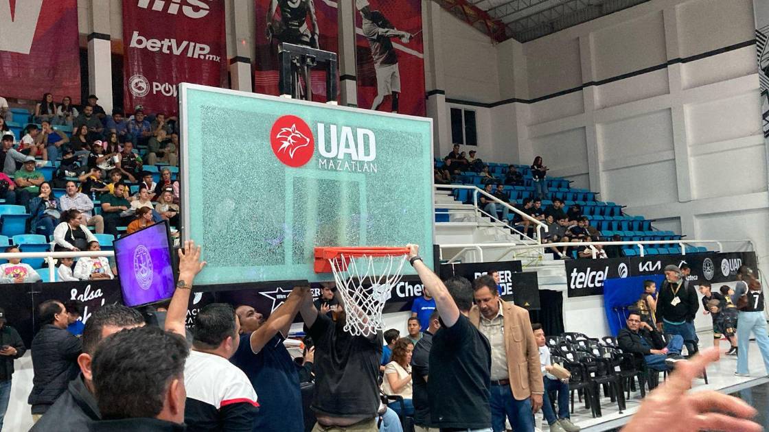 Previo al encuentro que los locales Venados de Mazatlán Basketball y Astros de Jalisco sostendrían para poner en marcha las acciones, uno de los tableros sufrió un percance al resquebrajarse durante el calentamiento de los jugadores.