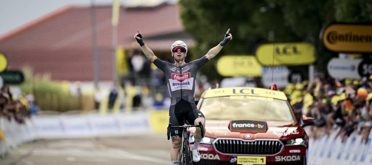 El australiano se doctoró así con una fuga en su debut en la gran ronda gala, a la cual llegaba con siete victorias de etapa en La Vuelta y dos en el Giro, casi siempre al sprint, y anotó el tercer triunfo de Alpecin-Deceuninck en esta Grande Boucle.