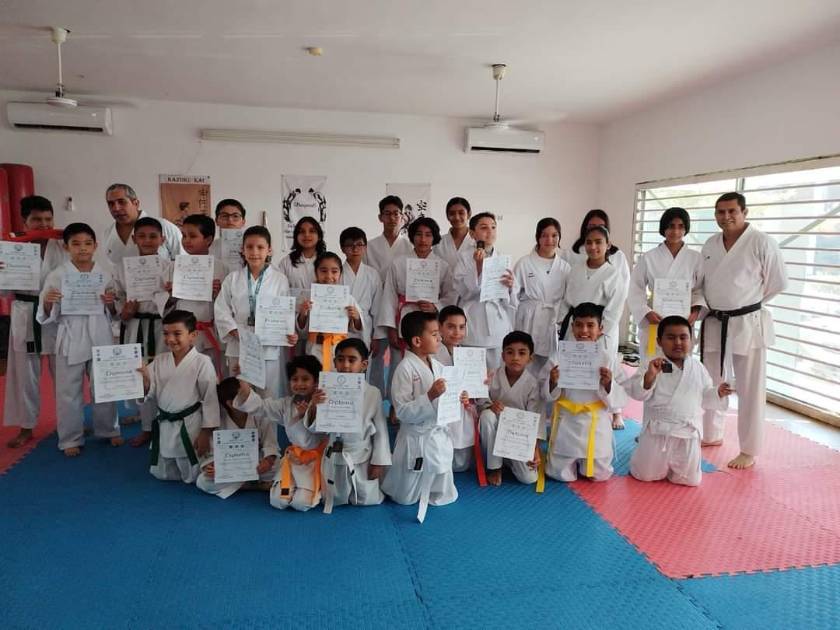 Más de 25 karatecas, entre los 6 y los 14 años de edad, realizaron ejercicios de kata, bunki (explicación de la kata) y trabajos de combate, evaluados por los senseis Gerardo Alexis García López y Juan de Dios Jacobo Solís.