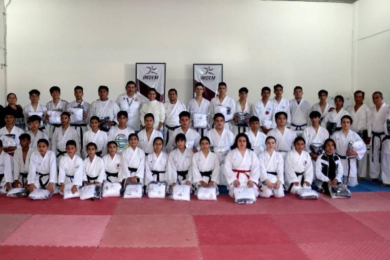 MAZATLÁN._ Atletas, senseis y parte del equipo interdisciplinario del Instituto Municipal del Deporte, se reunieron en el Salón de Usos Múltiples Imdem para la entrega de uniformes con los que la delegación de karate do representará a Mazatlán en la etapa estatal de los Juegos Nacionales Conade 2023, que arranca el próximo 14 de febrero.