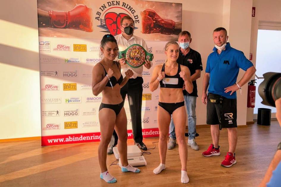 La tarde de este viernes, hora de Alemania, se celebró la ceremonia de pesaje, y ambas marcaron por abajo del límite de la división: la campeona detuvo la báscula en 46 kilos con 700 gramos, mientras que la mochiteca pesó 47 kilos y medio.