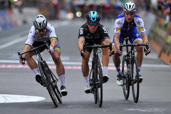"El polaco le arrebata la punta a Peter Sagan"