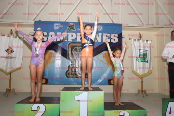 La competencia de gimnasia se desarrolló en el auditorio del Colegio Andes Mazatlán, lugar en el que se premió a lo mejor de la disciplina dividida en las pruebas de salto, viga, barras asimétricas y suelo.