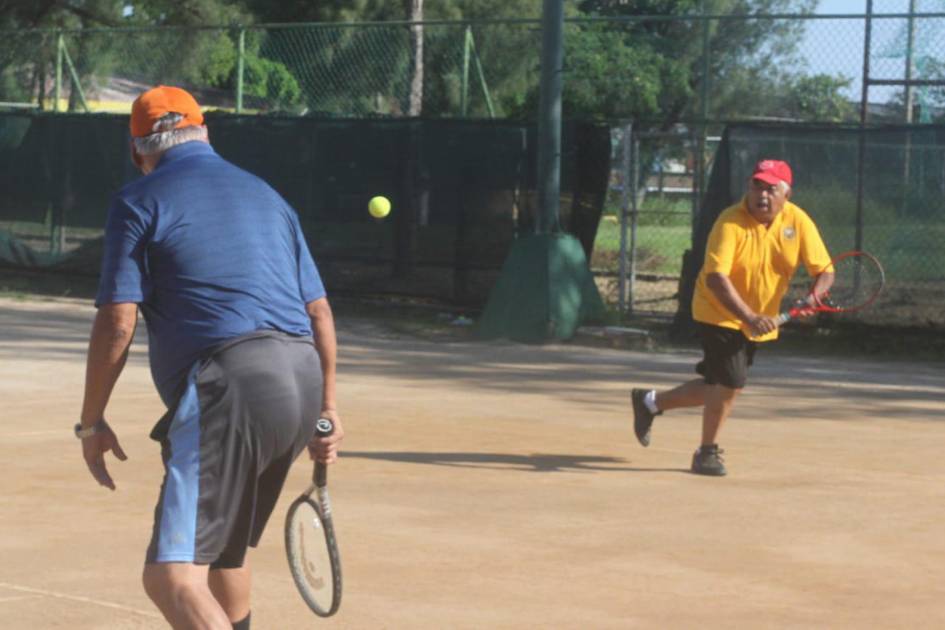 MAZATLÁN._ Los experimentados Jesús Ordóñez y Eleazar Chicuate impusieron su mayor acoplamiento dentro de la cancha para doblar 8-6 a Manuel Arámburo y Tino Rodríguez, en acciones del Torneo de Tenis Viva México 2021, en las instalaciones del Club Deportivo Muralla.