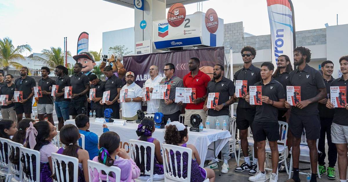 MAZATLÁN._ En un evento emocionante, Chevron presentó el álbum coleccionable de la Liga Mexicana de Basquetbol Cibacopa en la gasolinera de casa y acompañado del equipo de Venados Basketball.