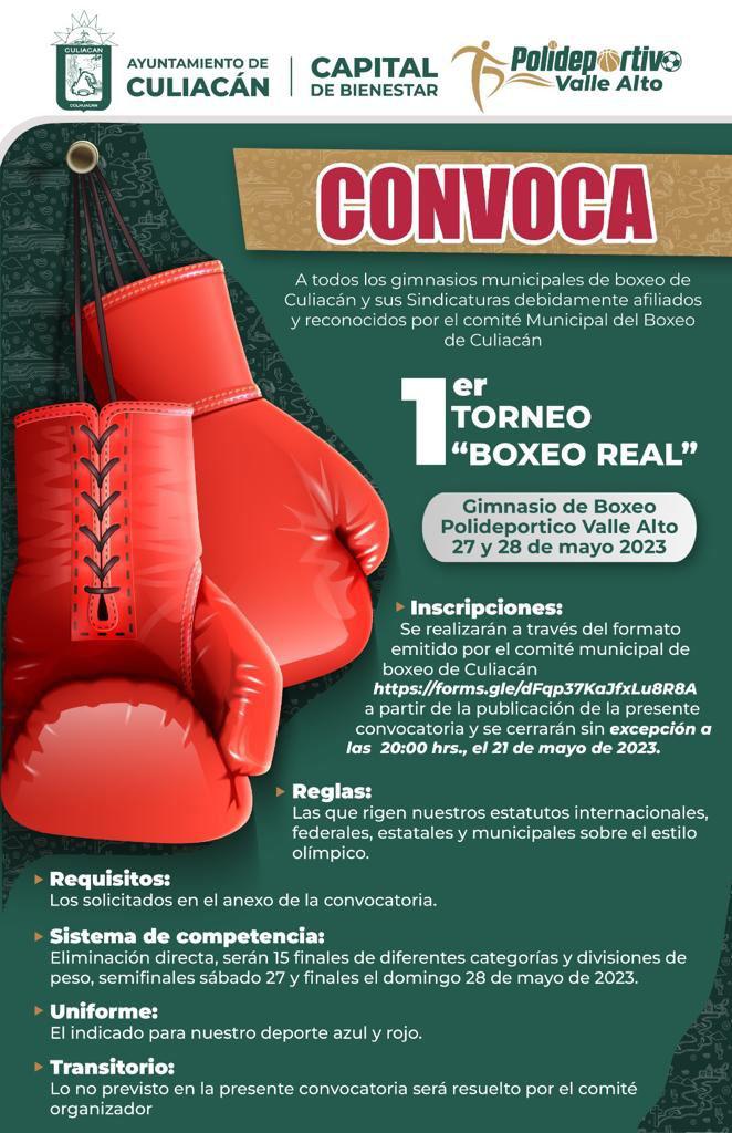 “Será el primer torneo de box institucionalizado aquí en Valle Alto, esperemos que tengamos el apoyo de la afición y los gimnasios de Culiacán, Navolato y alrededores para que sea un evento nutrido, de calidad y muy contentos, emocionados y ya esperando que llegue la fecha, 27 y 28 de mayo para que no se les olvide, aquí vamos a tener un gran torneo”, agregó el popular “Tori”.