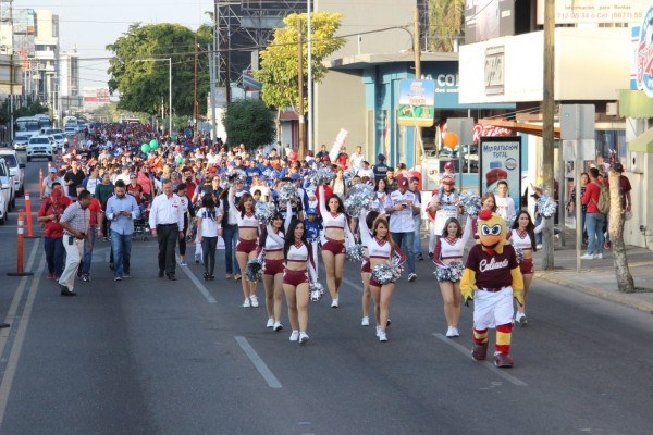 El desfile inició frente al Palacio Municipal por la avenida Álvaro Obregón hasta dar vuelta por el bulevar Constitución hasta la entrada al estadio Tomatero.