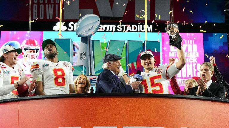 En el juego de este domingo en el State Farm Stadium en Glendale, entre Kansas City Chiefs y Philadelphia Eagles, se pudo ver a muchas personalidades, algunas de las cuales asistieron para no perderse el show de Rihanna.