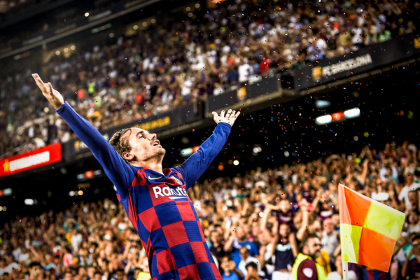 El francés Antoine Griezmann marcó sus primeros dos tantos con la playera del Barcelona y para celebrarlo se le ocurrió una gran idea: en su segunda anotación se acercó a una de las líneas del campo para tomar confeti que enseguida arrojó al cielo, en un festejo que emuló un ritual que suele realizar LeBron James, jugador de la NBA.
