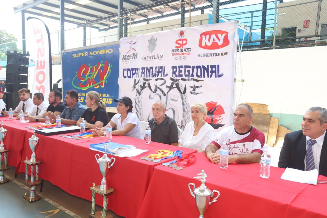 También presentes Jesús Moreno Salas, organizador de la Copa; César Aguiar, presidente de la Asociación de Karate de Sinaloa; Gerardo García, presidente del Comité Municipal de Karate; e invitados de dojos visitantes.